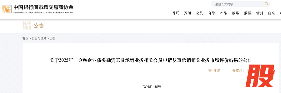 日前,中国银行间市场交易商协会(以下简称“交易商协会”)正式发布《关于2025年非金融企业债务融资工具承销业务相关会员申请从事承销相关业务市场评价结果的公告》(下称《公告》),宣布新增一批会员机构获得非金融企业债务融资工具承销业务资格。