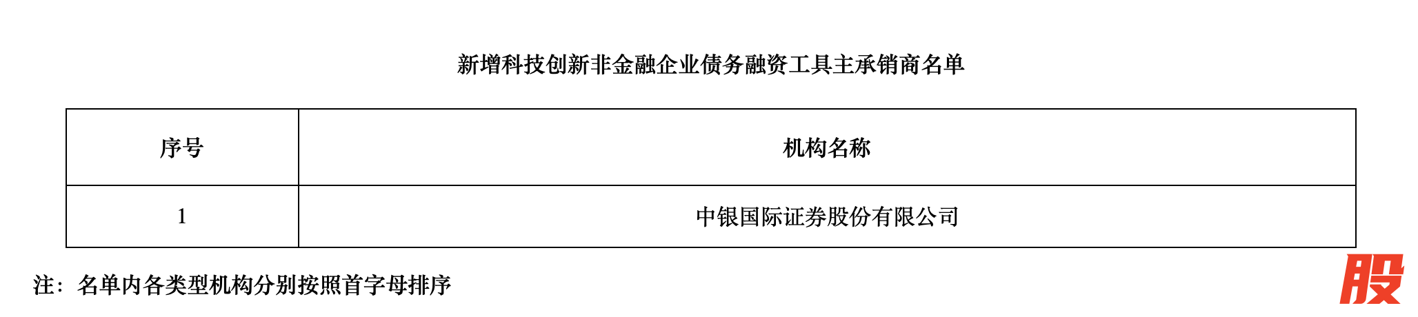 2.新增科技创新非金融企业债务融资工具主承销商1家,为中银国际证券股份有限公司,该类机构可主承销科技创新债券等支持科技创新的债务融资工具。