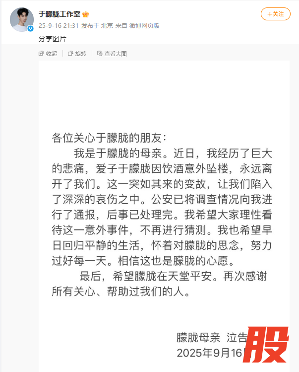 于朦胧母亲:于朦胧因饮酒意外坠楼于朦胧母亲:于朦胧因饮酒意外坠楼